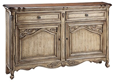 Accent Sideboard Hand-painted aged textured porcelain finish 60W x 11.75D x 36.625Ht.