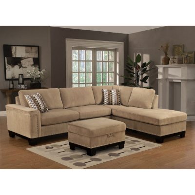 Create a living room that fits your style and needs with this sectional sofa wrapped in beige velvet