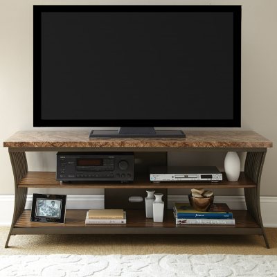 The TV Console features a faux marble top and two wooden shelves perfect for storage, displays or electronic components