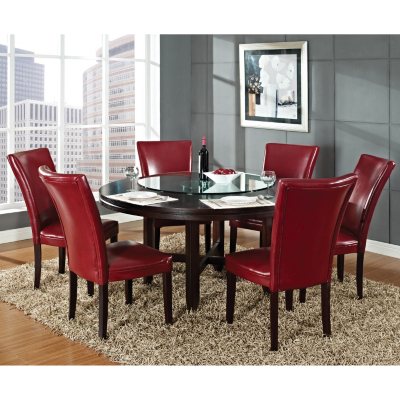 Should you be looking for reviews about dining chairs, then this is where to find it. Harding 62" Round Dining Set - 7 pc. - Red Leather Chairs might be your best choice. Check out this review and buy it by clicking the button below right now before this discount ends. Current price is 1099.00.