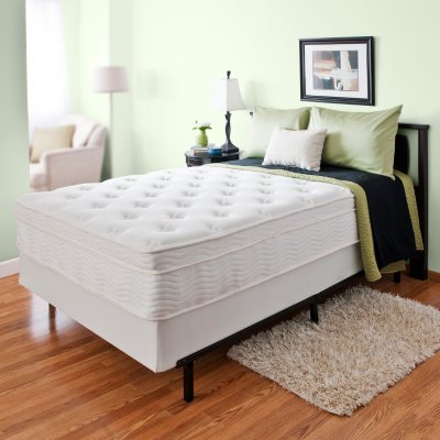This plush Euro pillow-top mattress and box spring set by Sealy Posturepedic offers the ultimate in comfort and support for a restful night's sleep