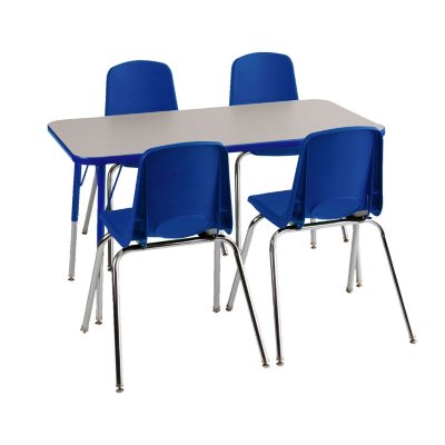 ECR4Kids Combo-One 24" Rectangular Table and Four 14" Chairs, Grey Nebula/Blue