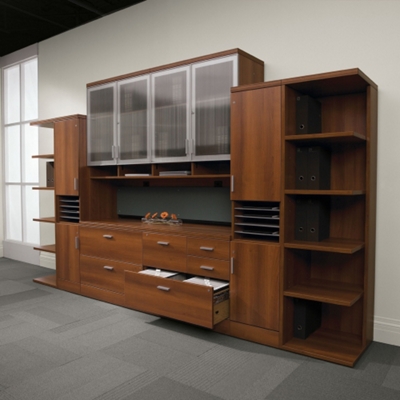 Add contemporary style and all the storage you need to an executive office with this complete storage wall