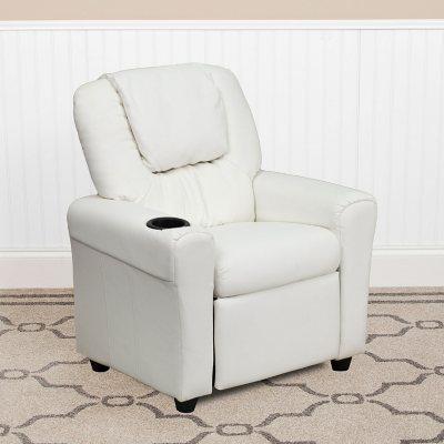 These are related products Contemporary White Vinyl Kids Recliner with Cup Holder and Headrest, it will probably be your best choice as well.