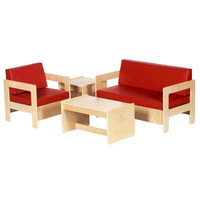 A cozy living room set that's just my size! Durable birch seating group ideal for promoting social interaction or providing a quiet spot to read