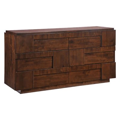Featuring a distinctive, contemporary design, the Frisco Double Dresser comes with six spacious drawers with fronts showcasing geometric shapes in a unique symmetrical pattern