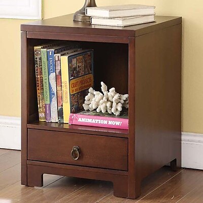 Marketplace by Thomasville 1-Drawer Side Table, Warm Mahogany: Exclusive factory-installed Assemblease fastening system1 accessory drawer for hidden storageOpen storage for books and home decorAntique brass hardware