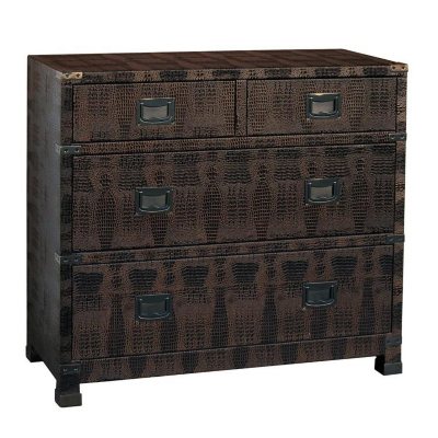 The Viera Drawer Chest has a simple linear shape that lends a contemporary feel to the piece, while the bronze lame finish gives the faux crocodile pattern a unique sheen