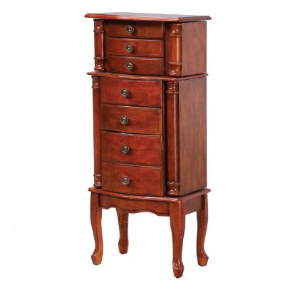 Classically shaped freestanding jewelry armoire features cherry veneer with "Classic Cherry" finish