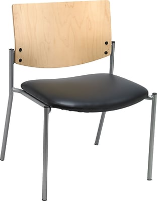 KFI Seating Wide Guest/Side Chair, Wood Back/Vinyl Seat, Natural Finish/Black, Seat: 20W x 19D, Back: 21W x 15 1/2H