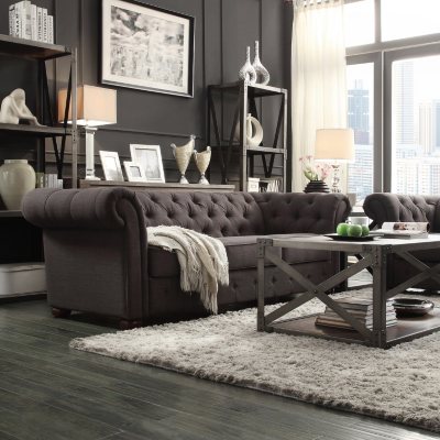 Kyle Tufted Sofa Linen - Dark Grey