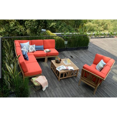 Teak Sectional Sofa Set - 8 pc-Red-Orange