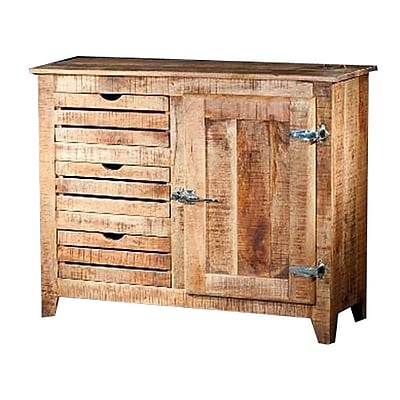 Natural solid mango wood with bright mickel hardware A solid mango wood Ice Chest accent console brings a touch of yesteryear home Dimensions: 35H x 43W x 16L