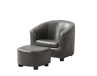 Monarch Specialties Inc. I 8109 Leather Look Juvenile Chair and Ottoman, Charcoal Gray